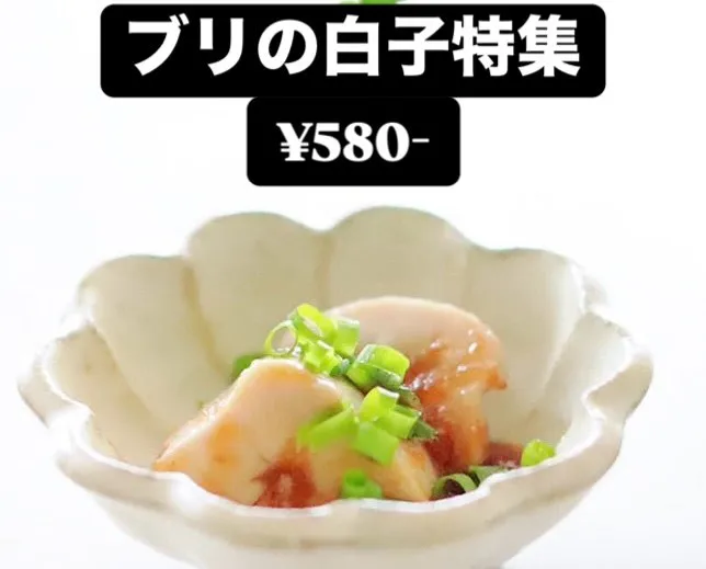 海のフォアグラとも称される鰤の白子メニュー開始します✨口の中に入れると溶けて無くなるほどのクリーミーさと濃厚な味わいはこの季節しか食べられない1品です。